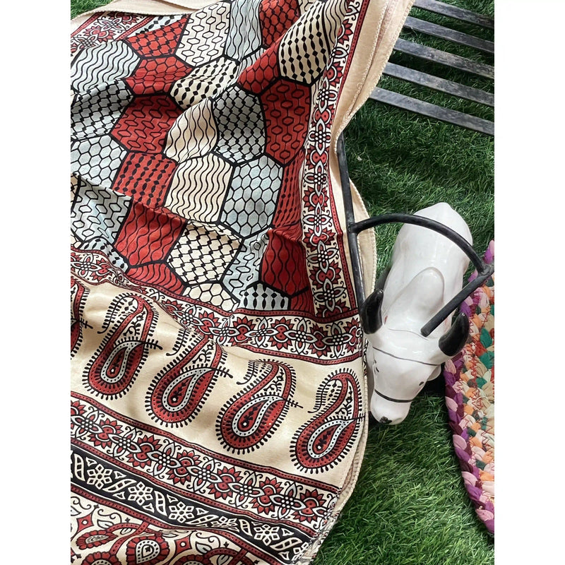 Discover timeless artistry with our Ajrakh Mashru Silk Stoles — a blend of traditional craft and refined elegance. Woven from luxurious Mashru silk, these stoles combine the subtle sheen of silk with the breathability of cotton, making them perfect for all-day comfort and effortless style.