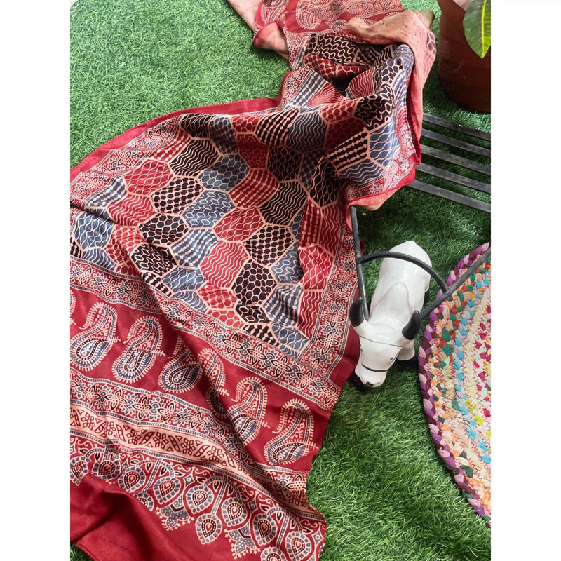 Ajrakh Mashru Silk Stoles – Heritage Woven in Luxury