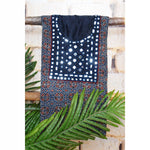 Embrace the charm of traditional Indian craftsmanship with our exclusive Ajrakh designer kurtis, featuring intricate hand-embroidered mirror work. Made from soft and breathable powerloom cotton, these kurtis offer unmatched comfort and style. Whether you're dressing up for a festive occasion or adding a touch of elegance to your everyday look, this kurti promises to make heads turn.