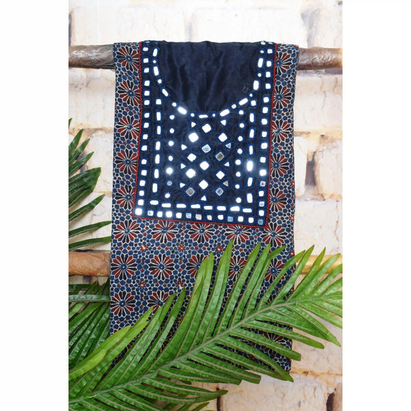 Experience Elegance with Our Ajrakh Designer Mirror Work Kurtis!