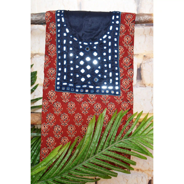 Experience Elegance with Our Ajrakh Designer Mirror Work Kurtis!