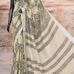 Ajrakh block print is from the Bhuj area, Gujarat. It is becoming increasingly popular for its intricacies in the blocks and the sober natural dyes.