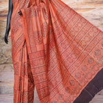 Rust Ajrakh Block Print Mulberry Silk Saree