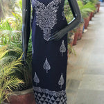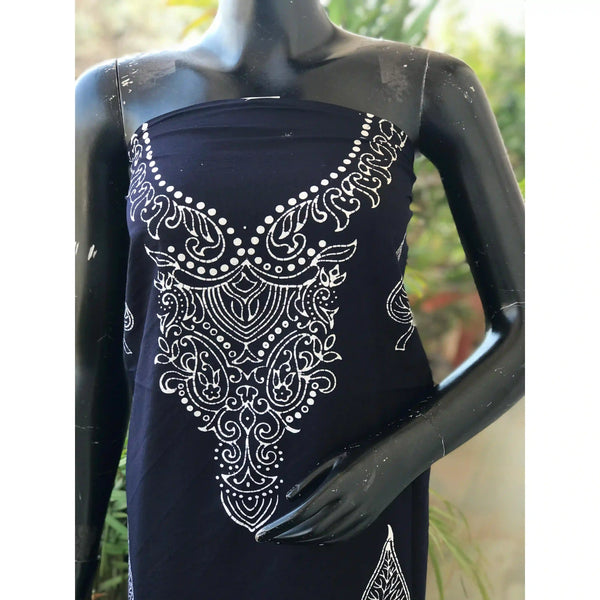 Navy Blue Batik Designer Cotton Kurti Fabric