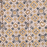 Ajrakh is usually found in Kutch (Gujarat) and Barmer (Rajasthan). Woodblock stamps are used to create different geometric patterns that are transferred onto the fabric using natural dyes, including vegetable and mineral dyes. The most common colours used include blue, red, black, yellow and green. One of the most common dyes used for this type of printing is indigo. Ajrakh has been dated back to Mohenjo-daro, where the kings and royals have been shown wearing similar prints to those observed in ajrak patterns today. The beauty of ajrak is in its simplistic yet elegant patterns and natural texture. This is handblock print fabric with natural dyes so small differences in colour and irregularities in prints are normal and the beauty of the art.