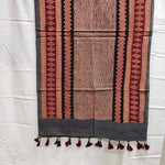 Ajrakh is usually found in Kutch (Gujarat) and Barmer (Rajasthan). Woodblock stamps are used to create different geometric patterns that are transferred onto the fabric using natural dyes, including vegetable and mineral dyes. The most common colours used include blue, red, black, yellow and green. One of the most common dyes used for this type of printing is indigo. Ajrak has been dated back to Mohenjo-daro, where the kings and royals have been shown wearing similar prints to those observed in ajrak patterns today. The beauty of ajrak is in its simplistic yet elegant patterns and natural texture. This fabric is a manual screen print fabric, and not hand block print or machine screen print.