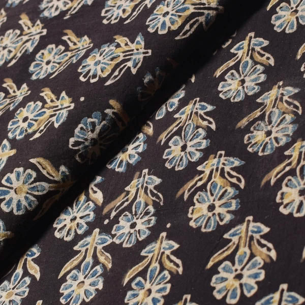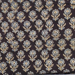 Ajrakh is usually found in Kutch (Gujarat) and Barmer (Rajasthan). Woodblock stamps are used to create different geometric patterns that are transferred onto the fabric using natural dyes, including vegetable and mineral dyes. The most common colours used include blue, red, black, yellow and green. One of the most common dyes used for this type of printing is indigo. Ajrak has been dated back to Mohenjo-daro, where the kings and royals have been shown wearing similar prints to those observed in ajrak patterns today. The beauty of ajrak is in its simplistic yet elegant patterns and natural texture. This is handblock print fabric with natural dyes so small differences in colour and irregularities in prints are normal and the beauty of the art.