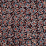 Ajrakh is usually found in Kutch (Gujarat) and Barmer (Rajasthan). Woodblock stamps are used to create different geometric patterns that are transferred onto the fabric using natural dyes, including vegetable and mineral dyes. The most common colours used include blue, red, black, yellow and green. One of the most common dyes used for this type of printing is indigo. Ajrakh has been dated back to Mohenjo-daro, where the kings and royals have been shown wearing similar prints to those observed in ajrak patterns today. The beauty of ajrak is in its simplistic yet elegant patterns and natural texture. This is handblock print fabric with natural dyes so small differences in colour and irregularities in prints are normal and the beauty of the art.