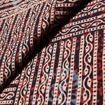 Ajrakh is usually found in Kutch (Gujarat) and Barmer (Rajasthan). Woodblock stamps are used to create different geometric patterns that are transferred onto the fabric using natural dyes, including vegetable and mineral dyes. The most common colours used include blue, red, black, yellow and green. One of the most common dyes used for this type of printing is indigo. Ajrakh has been dated back to Mohenjo-daro, where the kings and royals have been shown wearing similar prints to those observed in ajrak patterns today. The beauty of ajrak is in its simplistic yet elegant patterns and natural texture. This is handblock print fabric with natural dyes so small differences in colour and irregularities in prints are normal and the beauty of the art.