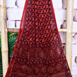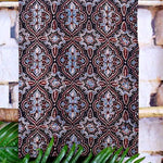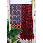 Ajrakh is usually found in Kutch (Gujarat) and Barmer (Rajasthan). Woodblock stamps are used to create different geometric patterns that are transferred onto the fabric using natural dyes, including vegetable and mineral dyes. The most common colours used include blue, red, black, yellow and green. One of the most common dyes used for this type of printing is indigo. Ajrak has been dated back to Mohenjo-daro, where the kings and royals have been shown wearing similar prints to those observed in ajrak patterns today. The beauty of ajrak is in its simplistic yet elegant patterns and natural texture. This is handblock print fabric with natural dyes so small differences in colour and irregularities in prints are normal and the beauty of the art.