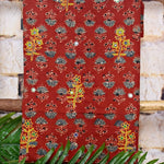 Ajrakh is usually found in Kutch (Gujarat) and Barmer (Rajasthan). Woodblock stamps are used to create different geometric patterns that are transferred onto the fabric using natural dyes, including vegetable and mineral dyes. The most common colours used include blue, red, black, yellow and green. One of the most common dyes used for this type of printing is indigo. Ajrak has been dated back to Mohenjo-daro, where the kings and royals have been shown wearing similar prints to those observed in ajrak patterns today. The beauty of ajrak is in its simplistic yet elegant patterns and natural texture. This is handblock print fabric with natural dyes so small differences in colour and irregularities in prints are normal and the beauty of the art.