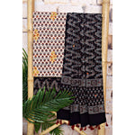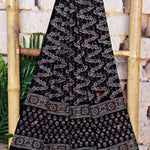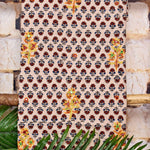 Ajrakh is traditionally found in Kutch (Gujarat) and Barmer (Rajasthan). It is created using woodblock stamps to produce various geometric patterns, which are applied to fabric with natural dyes, including vegetable and mineral dyes. The most common colors used in ajrakh include blue, red, black, yellow, and green, with indigo being one of the most prevalent dyes.