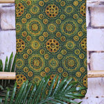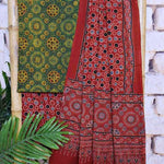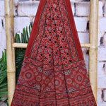 Ajrakh is usually found in Kutch (Gujarat) and Barmer (Rajasthan). Woodblock stamps are used to create different geometric patterns that are transferred onto the fabric using natural dyes, including vegetable and mineral dyes. The most common colours used include blue, red, black, yellow and green. One of the most common dyes used for this type of printing is indigo. Ajrak has been dated back to Mohenjo-daro, where the kings and royals have been shown wearing similar prints to those observed in ajrak patterns today. The beauty of ajrak is in its simplistic yet elegant patterns and natural texture. This is handblock print fabric with natural dyes so small differences in colour and irregularities in prints are normal and the beauty of the art.