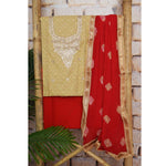 Gota patti is a beautiful form of embroidery from Jaipur in Rajasthan. A piece of lace is used and cut into different shapes to be embroidered onto fabrics. Some of the common motifs are flowers, leaves and peacock. It is often accompanied by mirror work.
