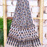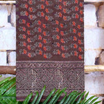 Ajrakh is usually found in Kutch (Gujarat) and Barmer (Rajasthan). Woodblock stamps are used to create different geometric patterns that are transferred onto the fabric using natural dyes, including vegetable and mineral dyes. The most common colours used include blue, red, black, yellow and green. One of the most common dyes used for this type of printing is indigo. Ajrak has been dated back to Mohenjo-daro, where the kings and royals have been shown wearing similar prints to those observed in ajrak patterns today. The beauty of ajrak is in its simplistic yet elegant patterns and natural texture. This is handblock print fabric with natural dyes so small differences in colour and irregularities in prints are normal and the beauty of the art.