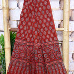 Ajrak is usually found in Kutch (Gujarat) and Barmer (Rajasthan). Woodbloack stamps are used to create different geometric patterns that are transferred onto the fabrics using natural dyes )vegetable and mineral). The most common colours used include blue, red, black, yellow and green.