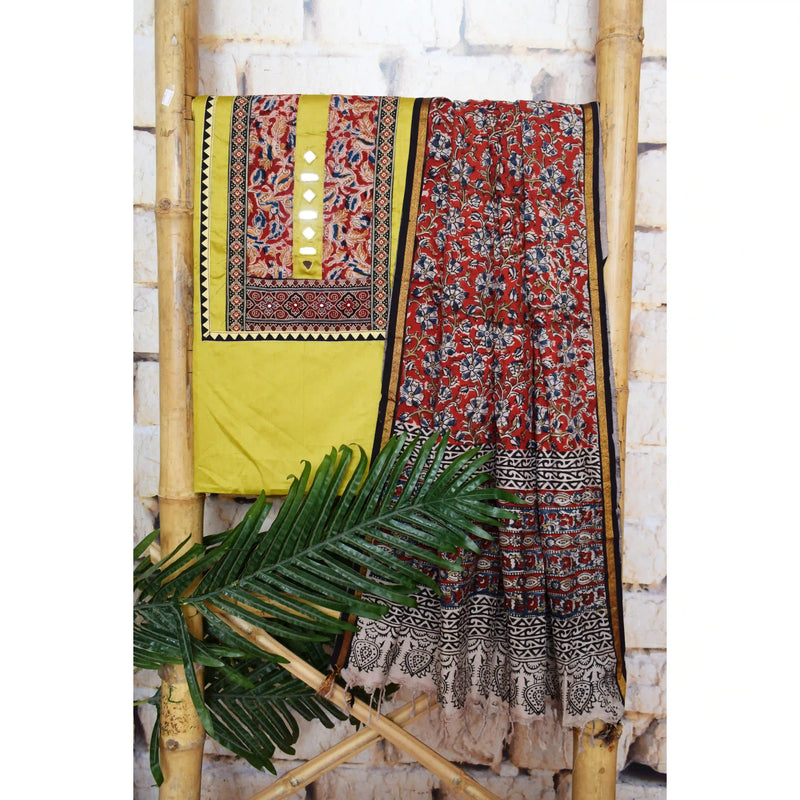 • Fabric: Top – 2.5m Cotton | Dupatta – 2.5m Silk Cotton with Kalamkari Block Print