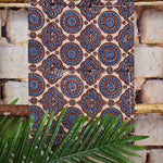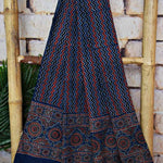 Ajrakh is usually found in Kutch Gujarat and Barmer in Rajasthan. Woodblock stamps are used to create different geometric patterns that are transferred onto the fabric using natural dyes, including vegetable and mineral dyes. The most common colours used include blue, red, black, yellow and green. One of the most common dyes used for this type of printing is indigo. Ajrak has been dated back to Mohenjo-daro, where the kings and royals have been shown wearing similar prints to those observed in ajrak patterns today. The beauty of ajrak is in its simplistic yet elegant patterns and natural texture. This is handblock print fabric with natural dyes so small differences in colour and irregularities in prints are normal and the beauty of the art.