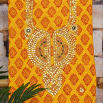 Gota patti is a beautiful form of embroidery from Jaipur in Rajasthan. A piece of lace is used and cut into different shapes to be embroidered onto fabrics. Some of the common motifs are flowers, leaves and peacock. It is often accompanied by mirror work.