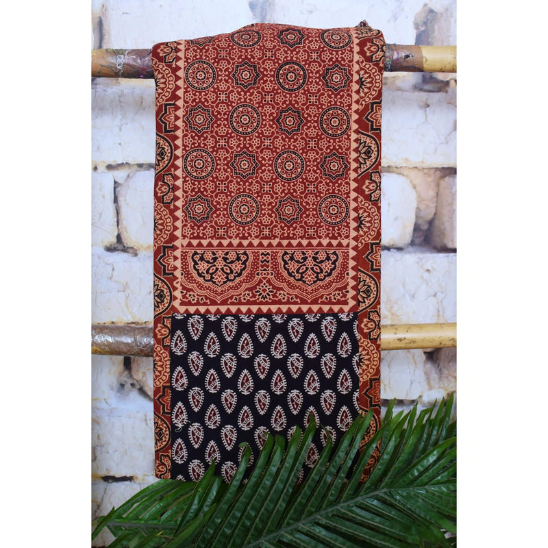 Madder Ajrakh Double Block Patch Kurti Fabric