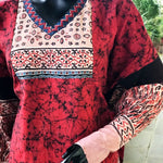 These Ajrakh Bandhani Patchwork Kurtis are designed for women who love comfort without compromising on style. Crafted in breathable cotton, each kurti blends the timeless charm of Ajrakh block prints with the vibrance of Bandhani tie-dye/ Batik resist dye , creating a one-of-a-kind patchwork look.