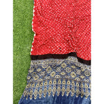 Made with the special ajrakh process - each dupatta has been hand block printed with ajrakh first, then tie dyed with bandhani to get the beautiful shades.