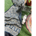 Each stole is adorned with Ajrakh hand block prints, an age-old technique from Kutch and Barmer. Skilled artisans hand-carve intricate patterns onto wooden blocks and print them using natural dyes derived from plants and minerals. The result is a stunning tapestry of geometric motifs in deep indigo, crimson, and earthy tones — a celebration of India’s rich textile heritage.