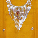 Gota patti or gota work is a type of Indian embroidery that originated in Rajasthan, India. Small pieces of zari ribbon are applied onto the fabric with the edges sewn down to create elaborate patterns.