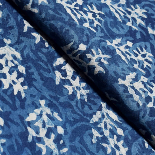 Dabu is a mud-resist hand-block printing practiced in Rajasthan, India. It is a tedious process involving a number of steps and the use of natural dyes. This unique form of printing is also environmentally non-toxic as it uses no harmful or synthetic dyes. Dabu, or mud, is used to block colours on the fabric before dyeing leading to the distinct patterns on the fabrics. A variety of designs are used to decorate the fabric, including geometric prints, flowers or small animals. Traditionally, dabu prints were only found in grey colours and tones (a muddy-clay colour), but now the patterns have migrated to newer colours - especially indigo.