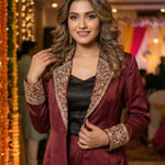Our SUTRA crop top-draped skirt with blazer is a beautiful ode to the age-old craft of Zardosi from the cities of Lucknow and Bhopal. We've tried to incorporate the traditional craft into modern silhouettes to give it a touch of royalty while staying true to the roots. Authentically hand made, this set is a beautiful mix of modern and traditional.