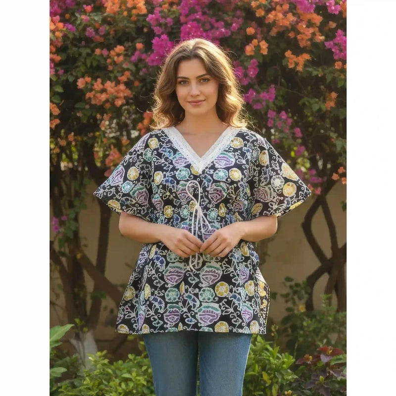 New designs of Batik short cotton kaftans to beat the heat this summer.