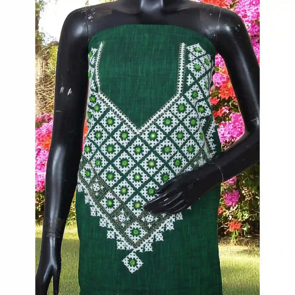 The neckline features a generously worked 16-inch yoke, intricately embroidered by skilled artisans, reflecting generations of Sindhi craftsmanship. Each piece stands out as a unique expression of heritage, artistry, and effort.