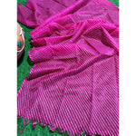 Add a burst of colour and tradition to your wardrobe with our Kota Doria dupattas, adorned in the age-old art of Leheriya and Bandhani. Crafted in Rajasthan, these dupattas capture the essence of festive vibrance through delicate wave-like patterns and fine tie-dye dots.