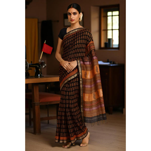 Fabric Handloom Maheshwari Silk with zari bootis all over.
