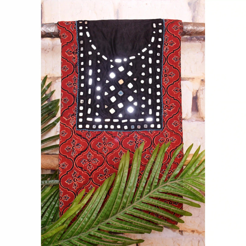 Experience Elegance with Our Ajrakh Designer Mirror Work Kurtis!
