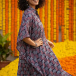 Step into sustainable fashion with this Ajrakh Kaftan Shirt Dress – a perfect blend of artisanal heritage and everyday elegance. Handcrafted using natural dyes and traditional wooden blocks, each piece celebrates centuries-old Ajrakh craftsmanship from Kutch, known for its deep indigo, rust and earthy motifs.