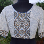 Handblock Printed blouses are perfect for matching with sarees. These are custom made blouses, so you can provide us with your measurements over email or whatsapp us on 7694841878 for any details. Come, join the mix and match #unblouse movement today!