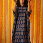 Step into sustainable fashion with this Ajrakh Kaftan Shirt Dress – a perfect blend of artisanal heritage and everyday elegance. Handcrafted using natural dyes and traditional wooden blocks, each piece celebrates centuries-old Ajrakh craftsmanship from Kutch, known for its deep indigo, rust and earthy motifs.