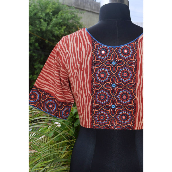 Handblock Printed blouses are perfect for matching with sarees. These are custom made blouses, so you can provide us with your measurements over email or whatsapp us on 7694841878 for any details. Come, join the mix and match #unblouse movement today!