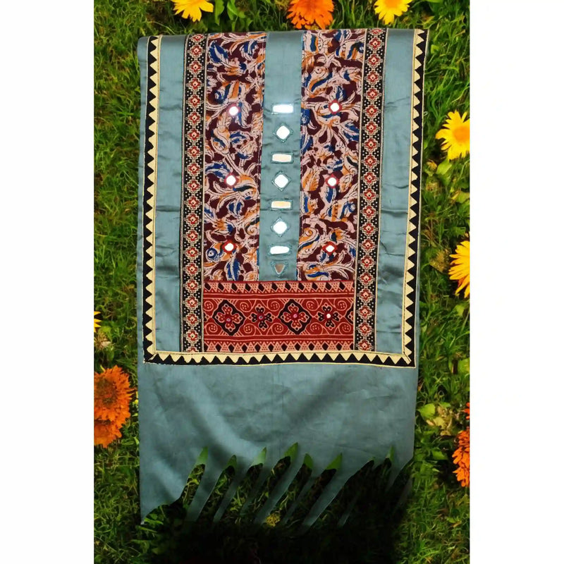 • Craft: Handcrafted Kalamkari patchwork with traditional mirror work detailing