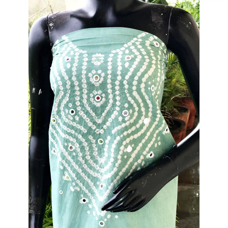 Bandhani Designer Kurti Fabric with Mirror Work – Tradition Meets Sparkle