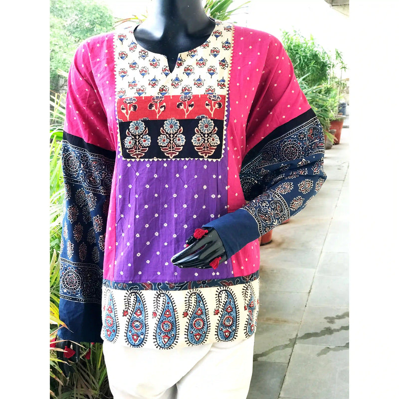 Ajrakh Bandhani/Batik Patchwork Short Kurtis – Effortless Everyday Elegance