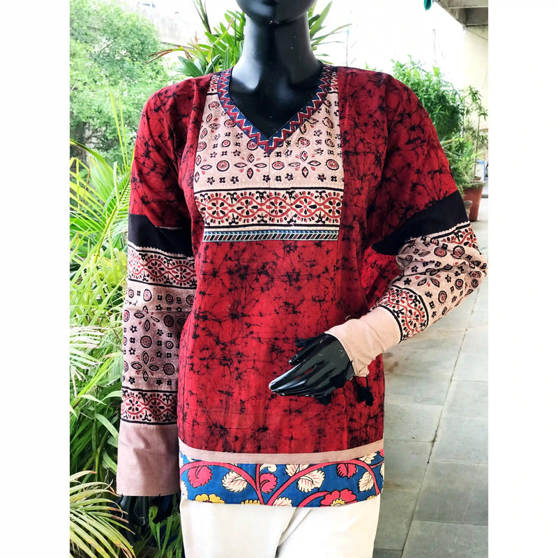 Ajrakh Bandhani/Batik Patchwork Short Kurtis – Effortless Everyday Elegance