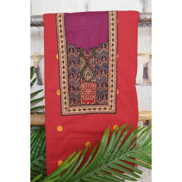 Red Embroidered Patchwork Cotton Kurti