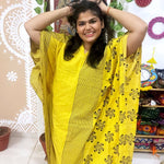 New designs of Ajrakh designer block print kaftans created with the amalgamation of modern and traditional motifs.