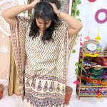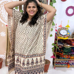 New designs of Ajrakh designer block print kaftans created with the amalgamation of modern and traditional motifs.