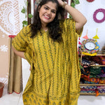 New designs of Ajrakh designer block print kaftans created with the amalgamation of modern and traditional motifs.