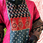 These Ajrakh Bandhani Patchwork Kurtis are designed for women who love comfort without compromising on style. Crafted in breathable cotton, each kurti blends the timeless charm of Ajrakh block prints with the vibrance of Bandhani tie-dye/ Batik resist dye , creating a one-of-a-kind patchwork look.