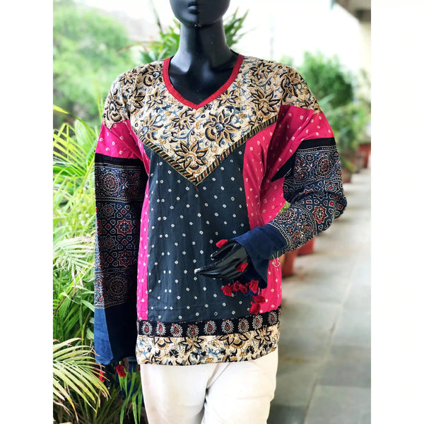 Ajrakh Bandhani/Batik Patchwork Short Kurtis – Effortless Everyday Elegance