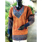 Orange Ajrakh Batik Cotton Designer Short Kurti